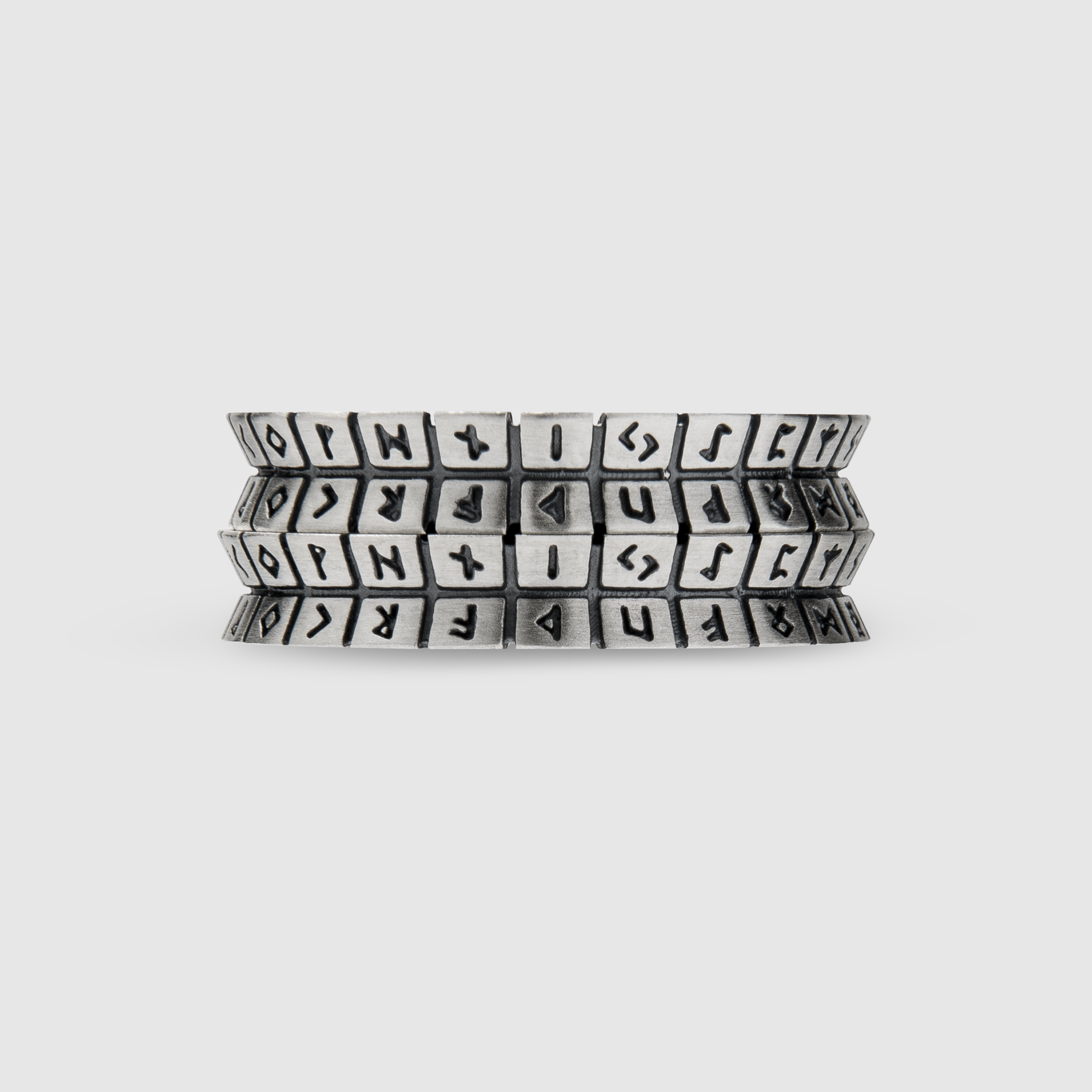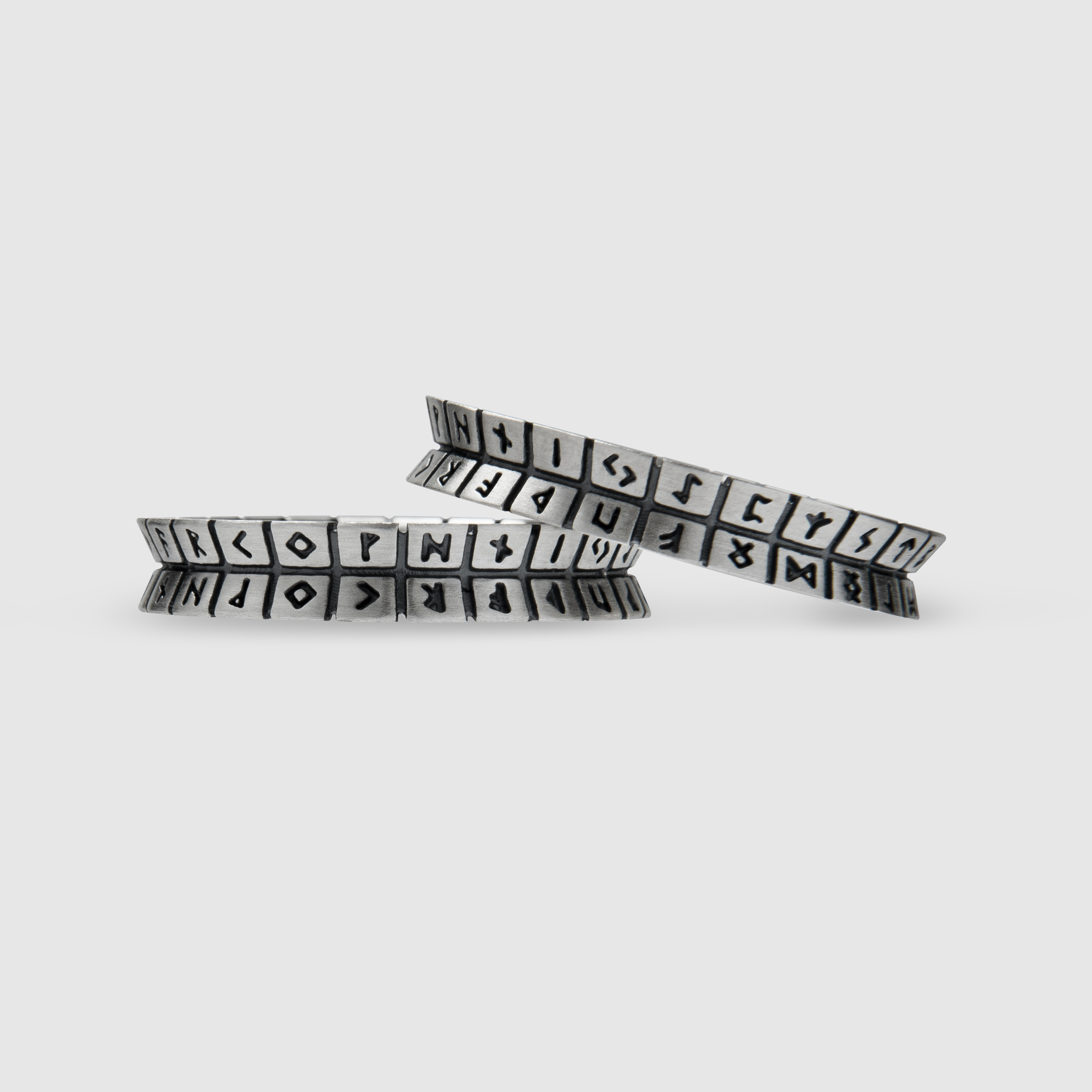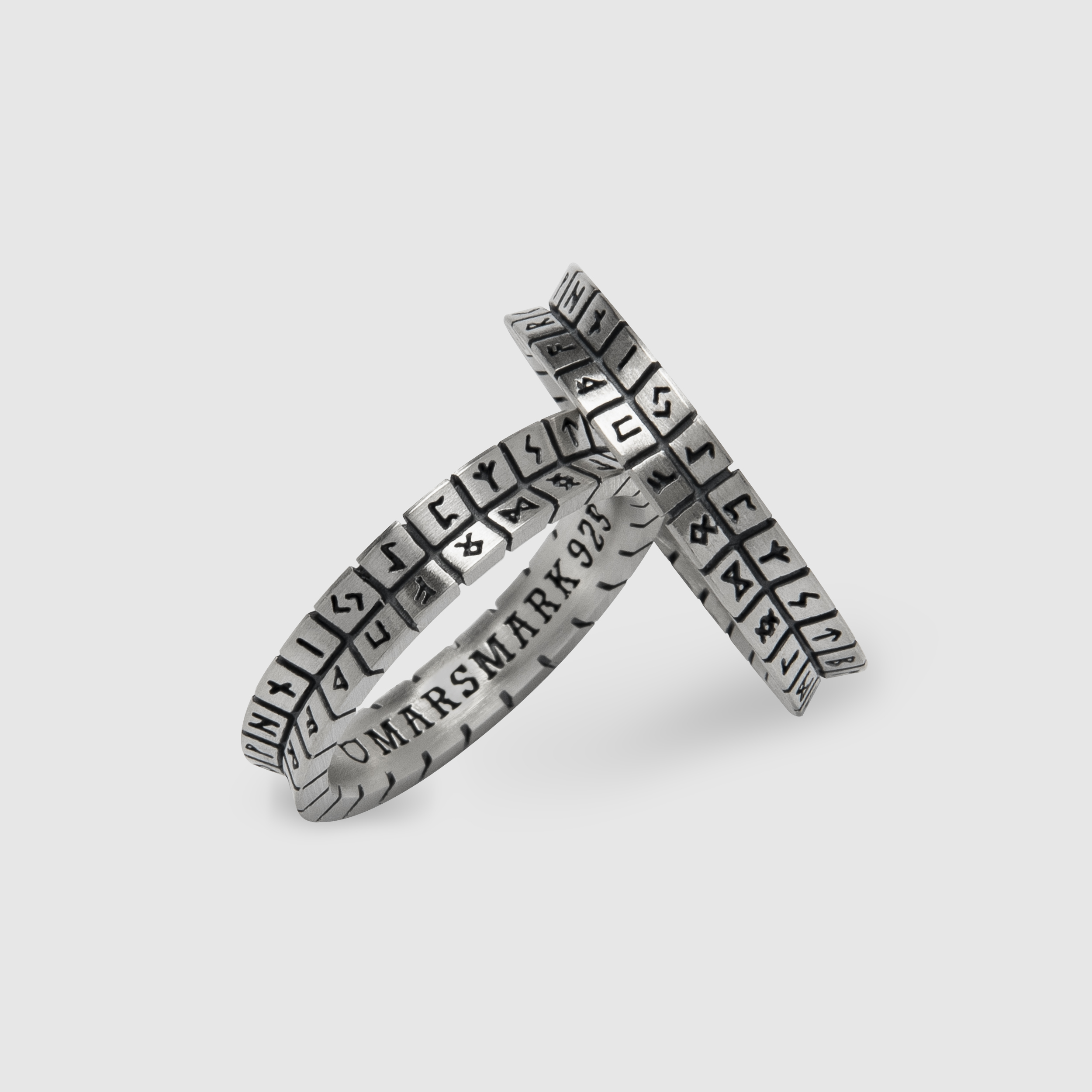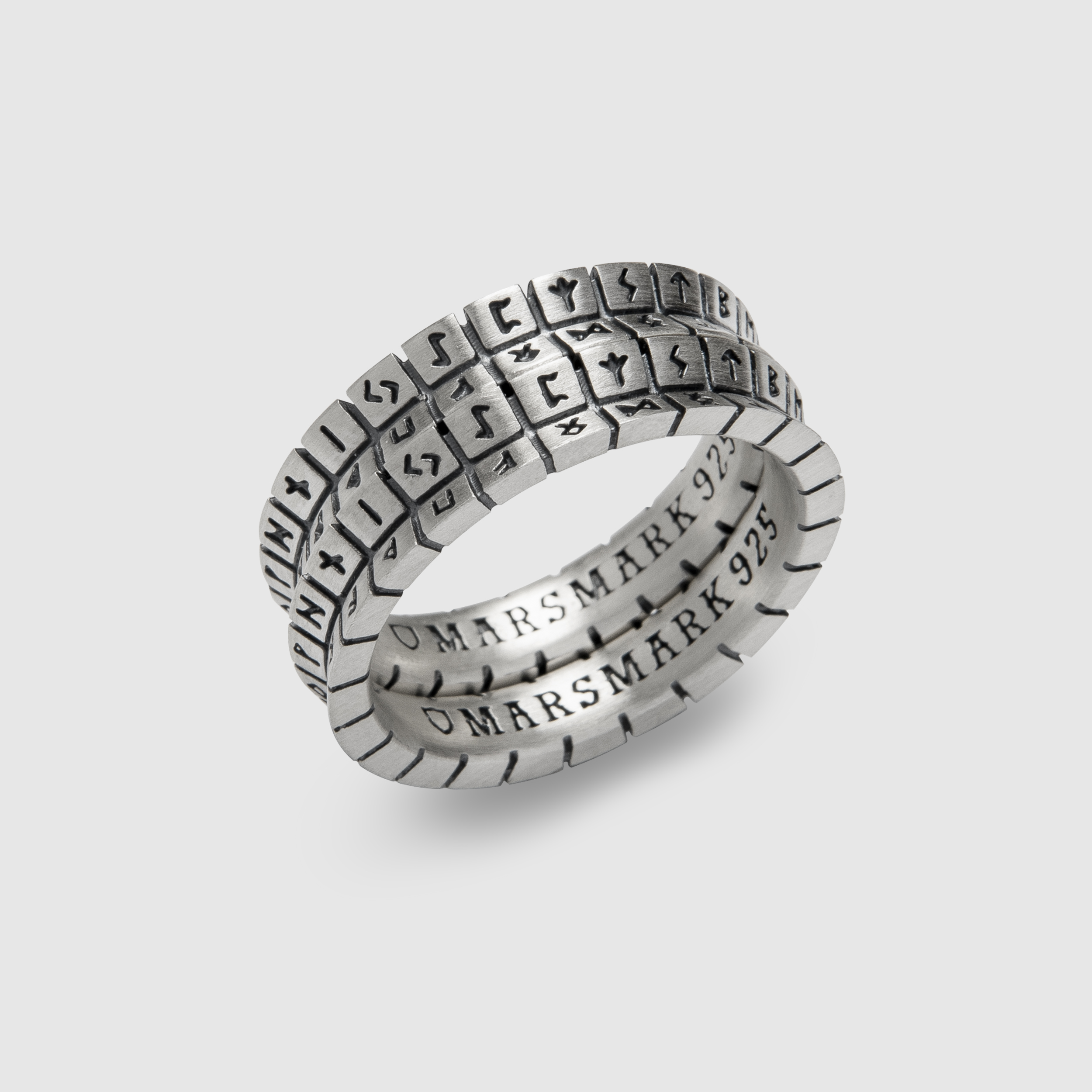 두 라인으로 고대 ‘룬 문자’가 새겨진 클래식 반지